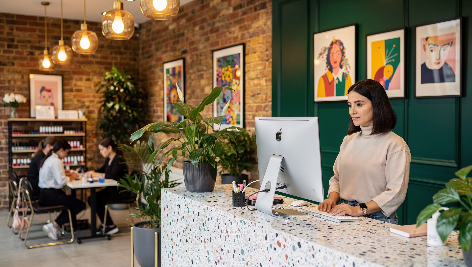 Поток клиентов большой, процедуры короткие. Дарья записывает за секунды и сама напомнит о коррекции через 3 недели.